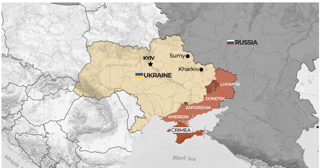 In 2014, Russia invaded and annexed Ukraine’s Crimean peninsula, a stretch of territory with strategically access to the Black Sea. In 2022, it began a full-scale invasion of Ukraine that has since settled into an ongoing war of attrition as of 2025, with marginal territorial gains and over a million total deaths. These invasions followed 2008 discussions about Ukraine’s potential NATO membership. Ukraine, shares a 1,426-mile border with Russia and hosts ethnic Russians and Russia’s Black Sea Fleet in Sevastopol, a key naval base for Mediterranean access. Russia’s strategic interests focus on securing its borders and trade routes, particularly in the Black Sea and Baltic Sea.