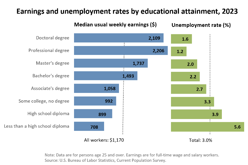 Indicator number four, education, is highly correlated to future earnings and wealth creation, as demonstrated by the following chart provided by the Bureau of Labor Statistics.